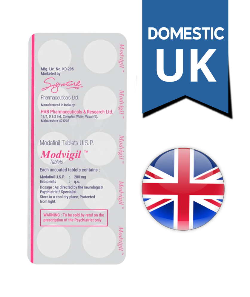 Pills containing Modafinil 200mg, packed in foil stripes of 10.